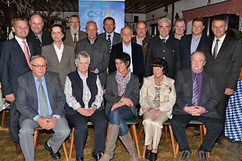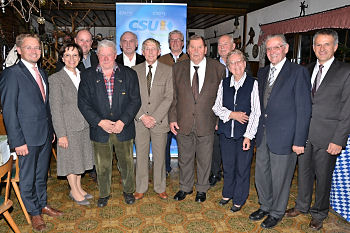 Im Bild die Geehrten, die dem CSU-Ortsverband Mitterteich seit zehn und 25 Jahren die Treue halten. „Mit ihrer Treue zur CSU tragen sie Anteil an der Erfolgsgeschichte der Christlich Sozialen Union in Bayern“ lobte Staatsministerin und CSU-Bezirksvorsitzende Emilia Müller (3. von links). |