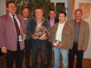 | "Für mich warst du eine wichtige Säule und Stütze, eine echte Hilfe", sagte CSU-Ortsvorsitzender und Bürgermeister Roland Grillmeier, als er im Rahmen der Fraktionssitzung den langjährigen Fraktionsvorsitzenden Karl-Heinz Ernstberger dankte. Ernstberger hatte zu Beginn der Legislaturperiode auf eine Wiederwahl als Fraktionsvorsitzender seiner Partei verzichtet.  Karl-Heinz Ernstberger führte als Nachfolger von Oswald Krämer über 16 Jahre seine Partei als Fraktionsvorsitzender im Stadtrat. Ernstberger lernte sowohl die Schattenseiten der Opposition, aber auch die "Schönheiten" einer Stadtratsmehrheit kennen. Bürgermeister Roland Grillmeier dankte namens seiner Partei mit einer Zoigl-Brotzeit und einem Zoiglbier. Josef Schwägerl, als jetziger Fraktionsvorsitzender sein Nachfolger, nannte Ernstberger einen politischen "alten Hasen", der wusste was er will. Fasziniert habe ihn seine ruhige ausgleichende Art, "er verlor selbst in rauen politischen Debatten nie die Übersicht". Seine Haushaltsreden waren immer durchdacht, was er sagte, hatte Hand und Fuß. Schwägerl freute sich, dass Karl-Heinz Ernstberger der Stadt als 2. Bürgermeister auch in den kommenden Jahren erhalten bleibt. Seit sechs Jahren bildet er mit Roland Grillmeier das erfolgreiche Gespann an der Spitze der Stadt, lobte Schwägerl. Karl-Heinz Ernstberger dankte in kurzen Worten für die lobenden Worte und bekannte, dass die Jahre an der Spitze der CSU-Fraktion eine schöne und erfolgreiche Zeit war. "Ich habe es gerne gemacht, ich wollte unsere Stadt nach vorne bringen".  Verabschiedet wurden von der CSU-Fraktion auch die ausgeschiedenen Stadtratsmitglieder. Hans Possehn und Stefan Neumüller gehörten dem Gremium sechs Jahre an und haben sich in dieser Zeit Verdienste erworben. Hans Possehn schaffte den Einzug ins Stadtparlament nicht wieder, auch weil er sich beruflich verändert hat. Possehn war früher CSU-Beauftragter für Kultur und Musik. Stefan Neumüller verzichtete aus beruflichen und geschäftlichen Gründen auf eine erneute Kandidatur für den Stadtrat. Er war sechs Jahre lang stellvertretender Jugendbeauftragter und Beauftragter für die Vereine. CSU-Fraktionsvorsitzender Josef Schwägerl bedauerte, dass beide Persönlichkeiten dem Stadtrat nicht mehr angehören und überreichte gemeinsam mit CSU-Ortsvorsitzenden Roland Grillmeier einen "bayerischen Löwen" aus Porzellan.    Text u. Bild: Josef Rosner |