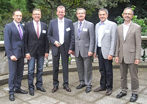 Die Bürgermeister der größeren Städte im Landkreis sowie der Vorsitzende des. Bay. Gemeindetages im Landkreis Tirschenreuth Bgm. Hubert Kellner (re.), im Gespräch mit dem neuen Vorsitzenden des Bay. Städtetages dem Nürnberger OB Maly (3. v. li.). |