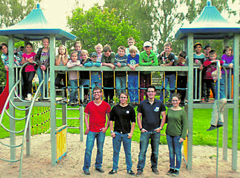 | Eine Schnitzeljagd hielt kürzlich 25 Kinder in Atem. Auf Einladung der Jungen Union erkundeten sie einen Großteil des Stadtgebiets. Aufgeteilt in drei Teams mussten die Mädchen und Buben an Orten wie dem Kirchturm, dem Kommunbrauhaus und dem "Fit- und Funpark" Aufgaben lösen. Wieder zurück am Ausgangspunkt im Stadtpark konnten die Kinder noch bei Spielen wie Sackhüpfen oder Wasserlaufen ihr Können unter Beweis stellen. Bei der Siegerehrung der Ferienaktion durften sich alle ein Geschenk aussuchen - die drei Besten natürlich zuerst. Im Bild die Teilnehmer mit den Betreuern Florian Haberkorn, Fabian Weinberger, Andreas Gärtner und Martina Werner (von links). |