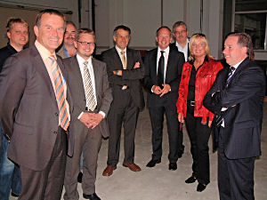 Wirtschafts-Staatssekretär Markus Sackmann (rechts) besuchte die Firma Glapor, die im ehemaligen Werk B, der früheren Porzellanfabrik, untergekommen ist. Glapor-Geschäftsführer Walter Frank (2. von links) führte durch den Betrieb, mit dabei auch KEWOG-Geschäftsführer Bernd Büsching (4. von rechts), Bürgermeister Roland Grillmeier sowie Landtagskandidat Tobias Reiss (4. v. li.)     |