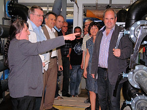 Anni Lang, vom städtischen Bauamt, zeigte den Christsozialen die durchgeführten Reparatur- und Sanierungsarbeiten, die auch in diesem Jahr wieder durchgeführt wurden. Erneuert wurden die Schwallwasserbehälter für die Schwimmbecken, das Nichtschwimmerbecken, sowie das Sprungbecken. Die alten Schwallwasserbehälter wurden von den Bademeistern mit Schweißbrennern vor Ort demontiert. Die neuen Behälter, aus PP-Platten, wurden in kellergeschweißter Ausführung über eine Fachfirma vor Ort eingebaut. Zusätzlich wurden die den Behältern zuführenden und abgehenden Wasserrohrleitungen in PVC und die jeweiligen Umwälzpumpen mit der entsprechenden Elektronik ausgewechselt. Weiter wurden im angrenzenden Filterraum sechs Filteranlagen saniert. Die bereits vorhandenen Filterkessel wurden sandgestrahlt und neu beschichtet. In den Filterbehältern wurden die Filterkerzen und der Filtersand erneuert. Die Investitionen bezifferte Frau Lang auf rund 200.000 Euro, die in die technische Verbesserung des Freibades gesteckt wurden.